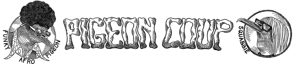 Welcome to Pigeon Coup, a comic which follows the exploits of a bunch of well meaning pigeons who hang out in the underground electronica scene and intend to change the world using spleefs as their primary weapons. It stars: